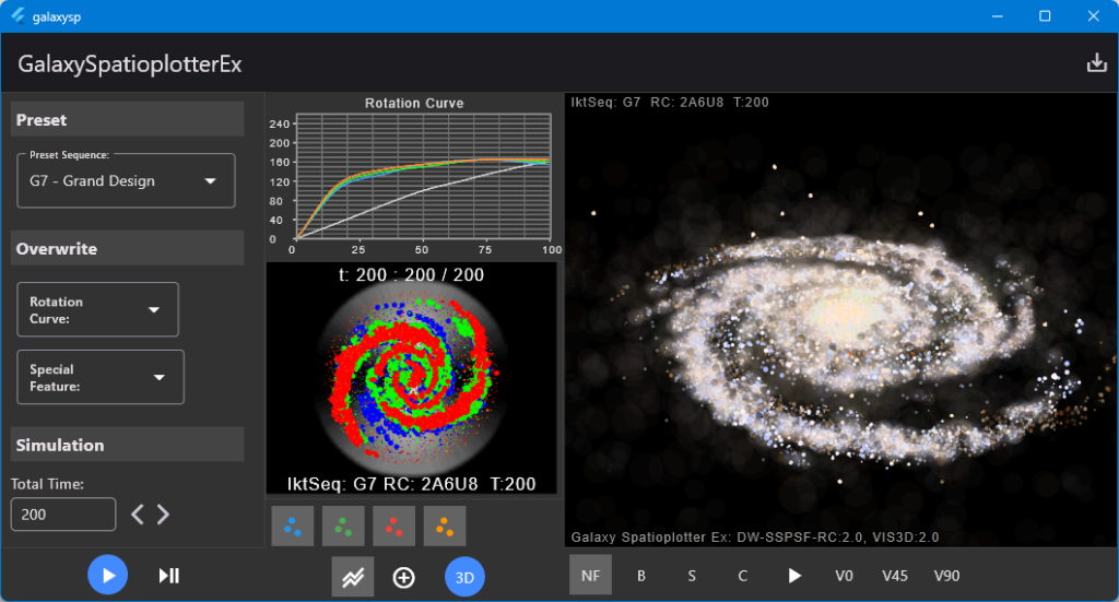 The Galaxy Spatioplotter generates a galaxy using a newly developed algorithm. The goal of the research was to find an algorithm that generates most of the shapes of known galaxies by changing its initial parameters of its simulation of kinetics of stars.